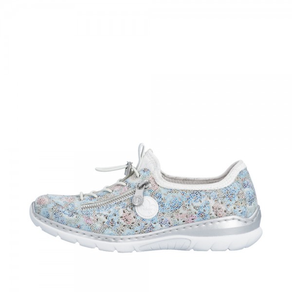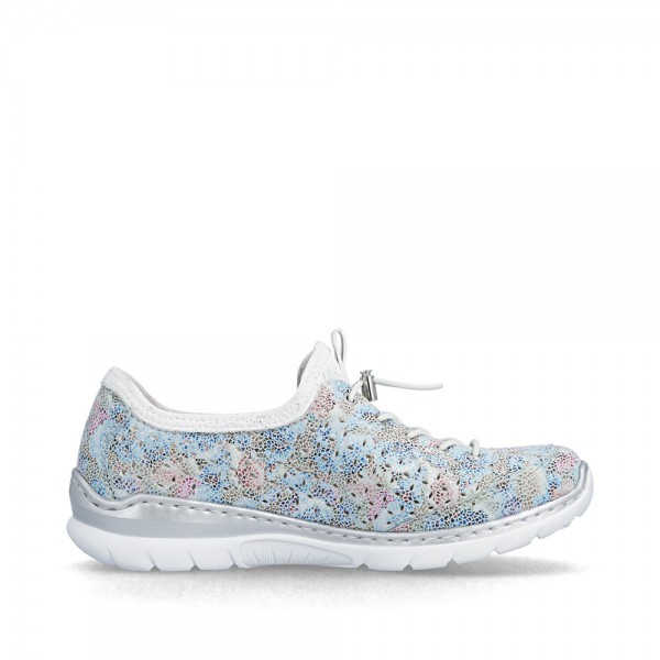 Baskets blanches avec des fleurs, très confortables de la marque Rieker, disponibles de la taille 35 à 42. Adaptées aux semelles amovibles.